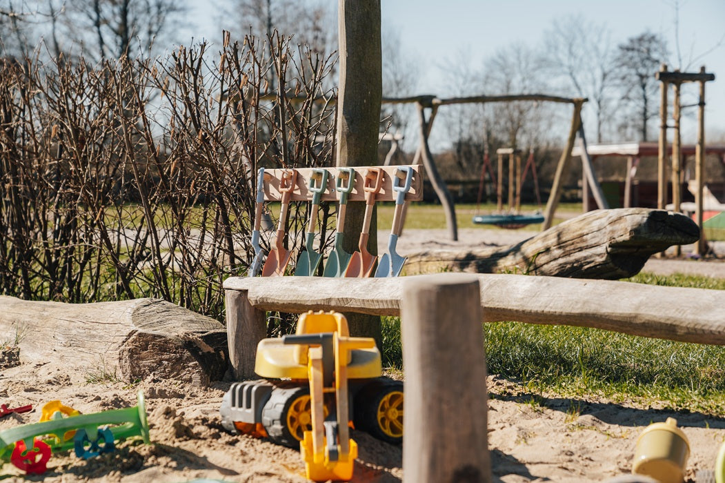 Direkt neben der Sonnen-Terrasse findest du ein riesiges Hüpfkissen, Seilbahnen, eine mega Sandkiste, Spieltrecker und Balancierpfade – hier geht's richtig ab!