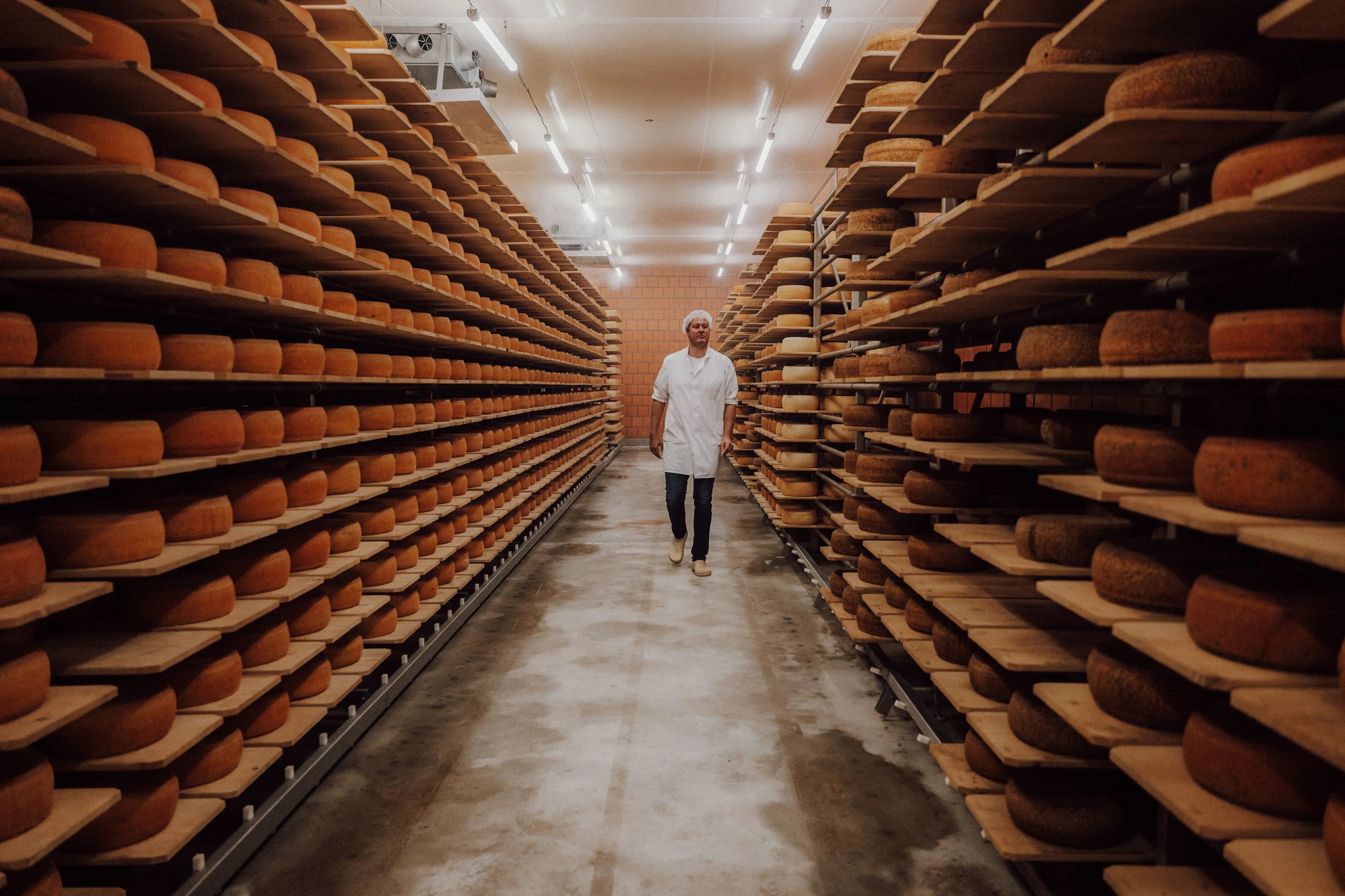 Unser Pflegeteam aus rund zehn Personen sorgt täglich dafür, dass jeder Käse perfekt reifen kann und seine ganz eigene Naturrinde entwickelt.
